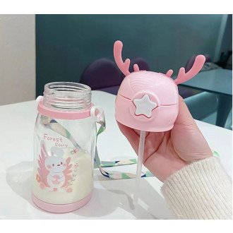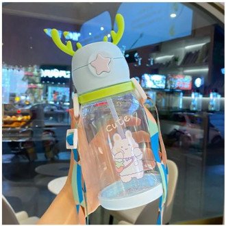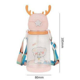 600ML Children Water Bottle Outdoor Travel Cartoon Animal Cup with Straw Cute Student Water Bottle with Shoulder Strap Gift