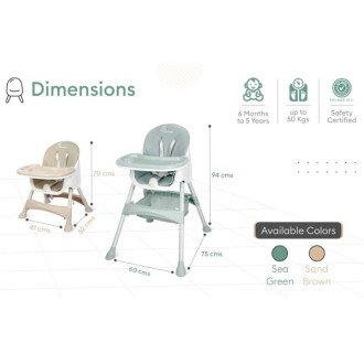 2-In-1 High Chair: This is a convertible high chair which can easily turn into a kids chair and can be used for kids study time or playtime.